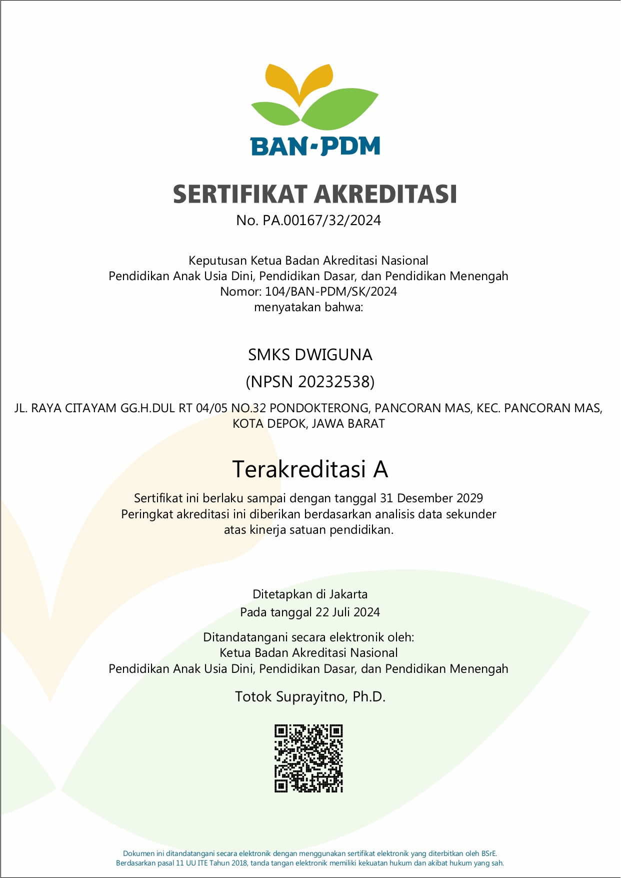 SMK TI Dwiguna Depok, sekolah yang fokus pada pengembangan kompetensi siswa, dengan bangga mengumumkan telah meraih akreditasi A. Prestasi ini merupakan bukti nyata bahwa sekolah telah berhasil mencetak lulusan yang siap kerja dan memiliki daya saing tinggi.