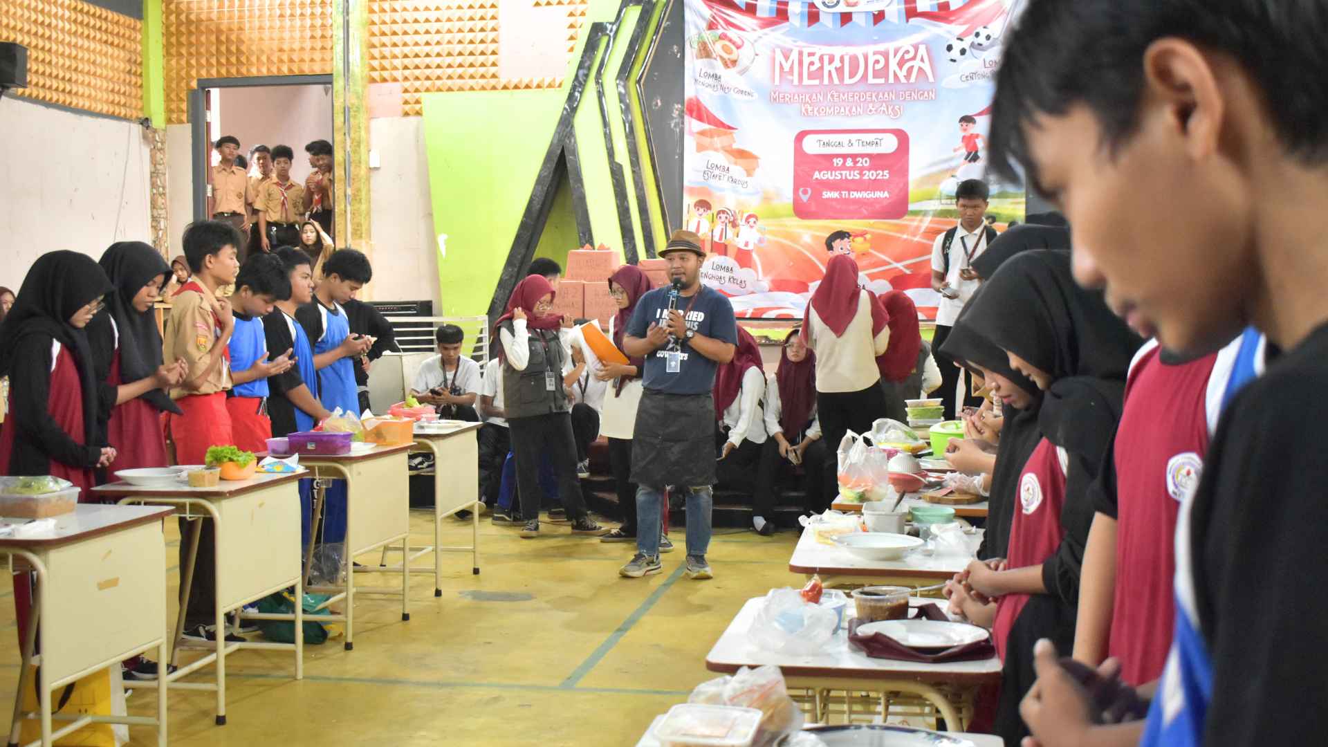 Depok, 20 Agustus 2025 – Dalam rangka menyambut Hari Ulang Tahun Kemerdekaan Republik Indonesia yang ke-80, OSIS SMK TI Dwiguna mengadakan serangkaian acara menarik yang bertemakan “Merdeka: Meriahkan Kemerdekaan dengan Kekompakan & Aksi”. Acara ini bertujuan untuk menumbuhkan semangat nasionalisme, kekompakan, serta kreativitas di kalangan siswa dan guru. Semua kegiatan berlangsung di SMK TI Dwiguna selama dua hari penuh, yaitu pada tanggal 19 & 20 Agustus 2025. Ini adalah kesempatan emas bagi seluruh siswa dan guru untuk menunjukkan bakat dan kekompakan tim mereka.