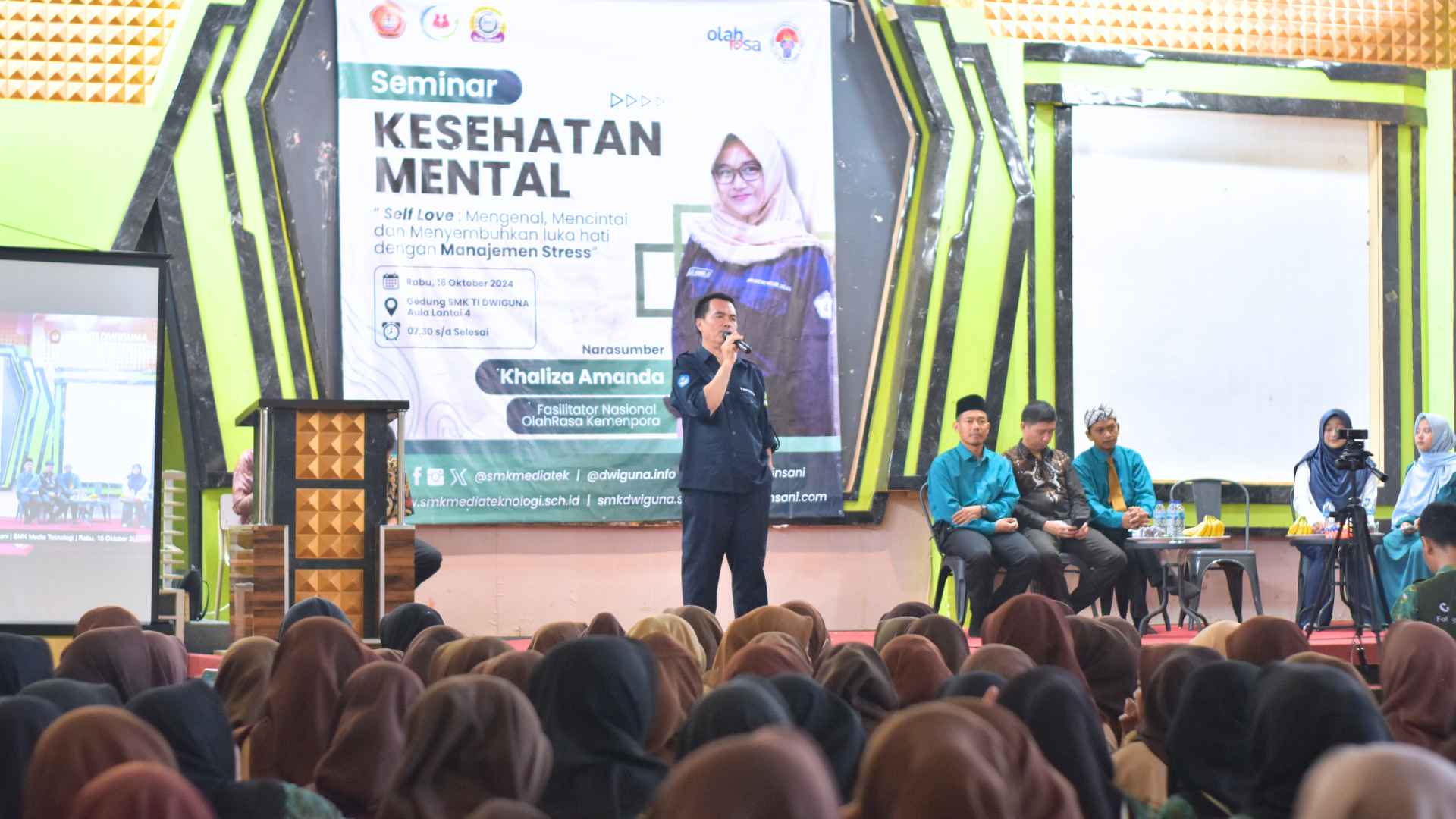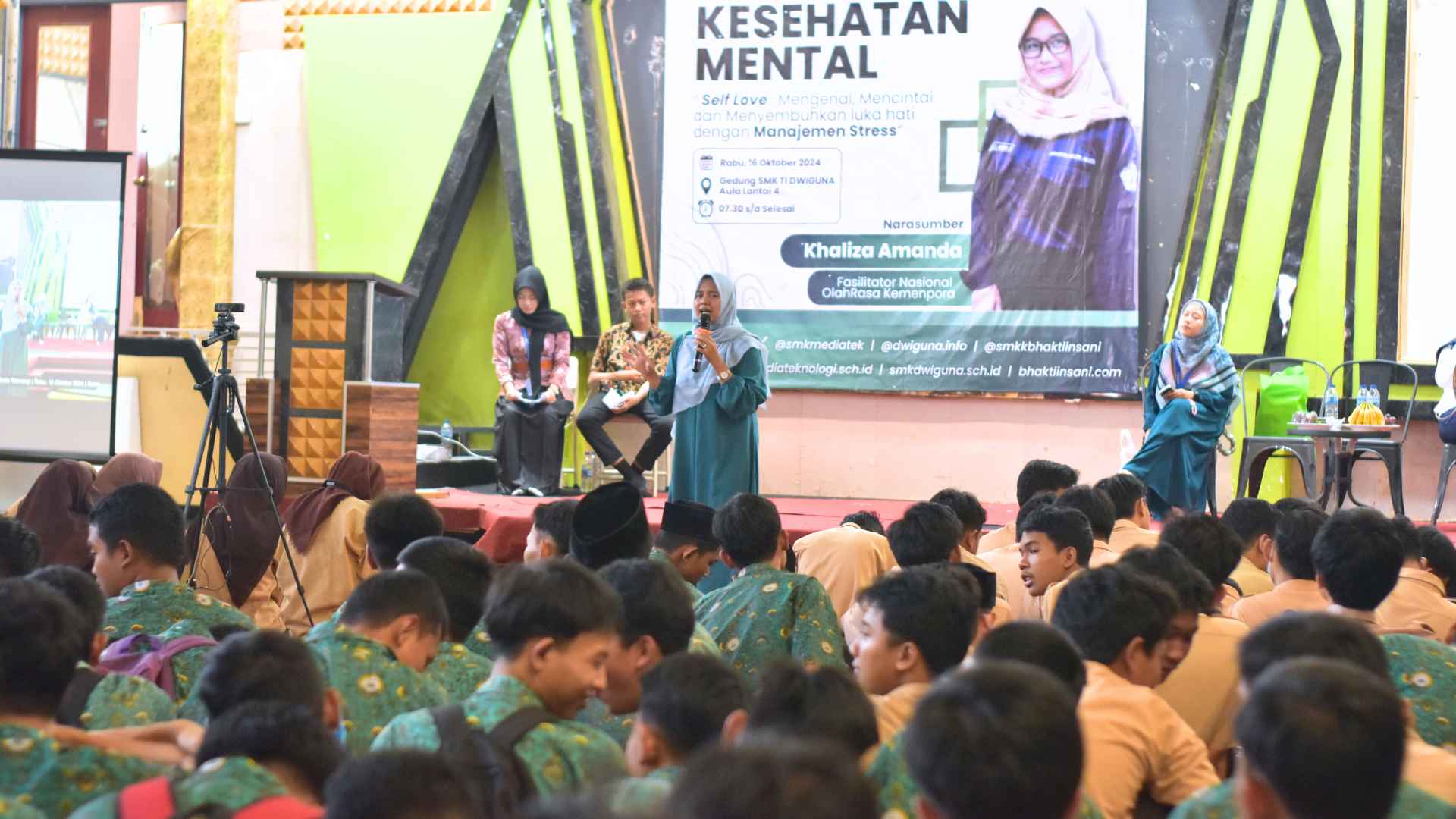 Depok, 16 Oktober 2024 – SMK TI Dwiguna sukses menggelar seminar bertema “Self Love” yang bertujuan untuk meningkatkan kesadaran siswa akan pentingnya kesehatan mental. Acara yang dihadiri oleh ratusan siswa ini menghadirkan Khaliza Amanda, seorang fasilitator nasional olahrasa Kemenpora, sebagai pembicara utama.